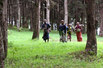 Girls playing in the woods |