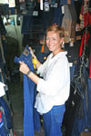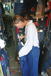 F trying jeans |