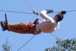 Didrik rapelling over dried water-fall