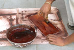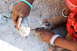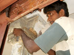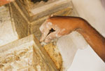 Artist carving in stone